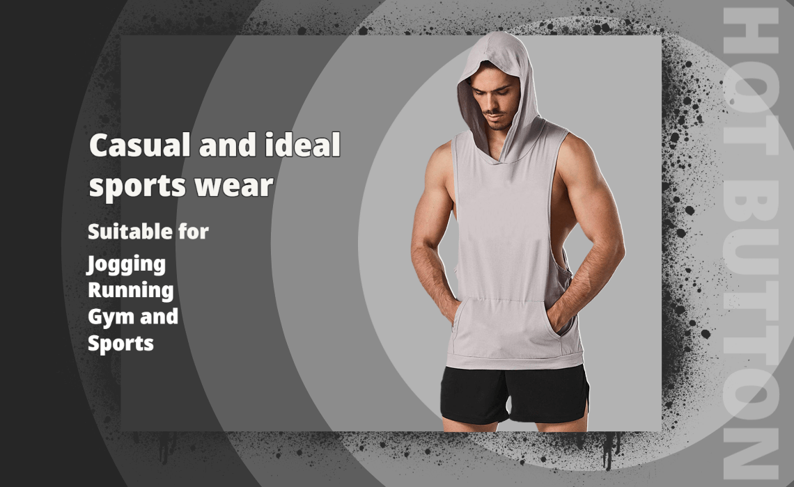 MEN'S GREY GYM SLEEVELESS TANK TOPS STRINGER HOODIE VEST