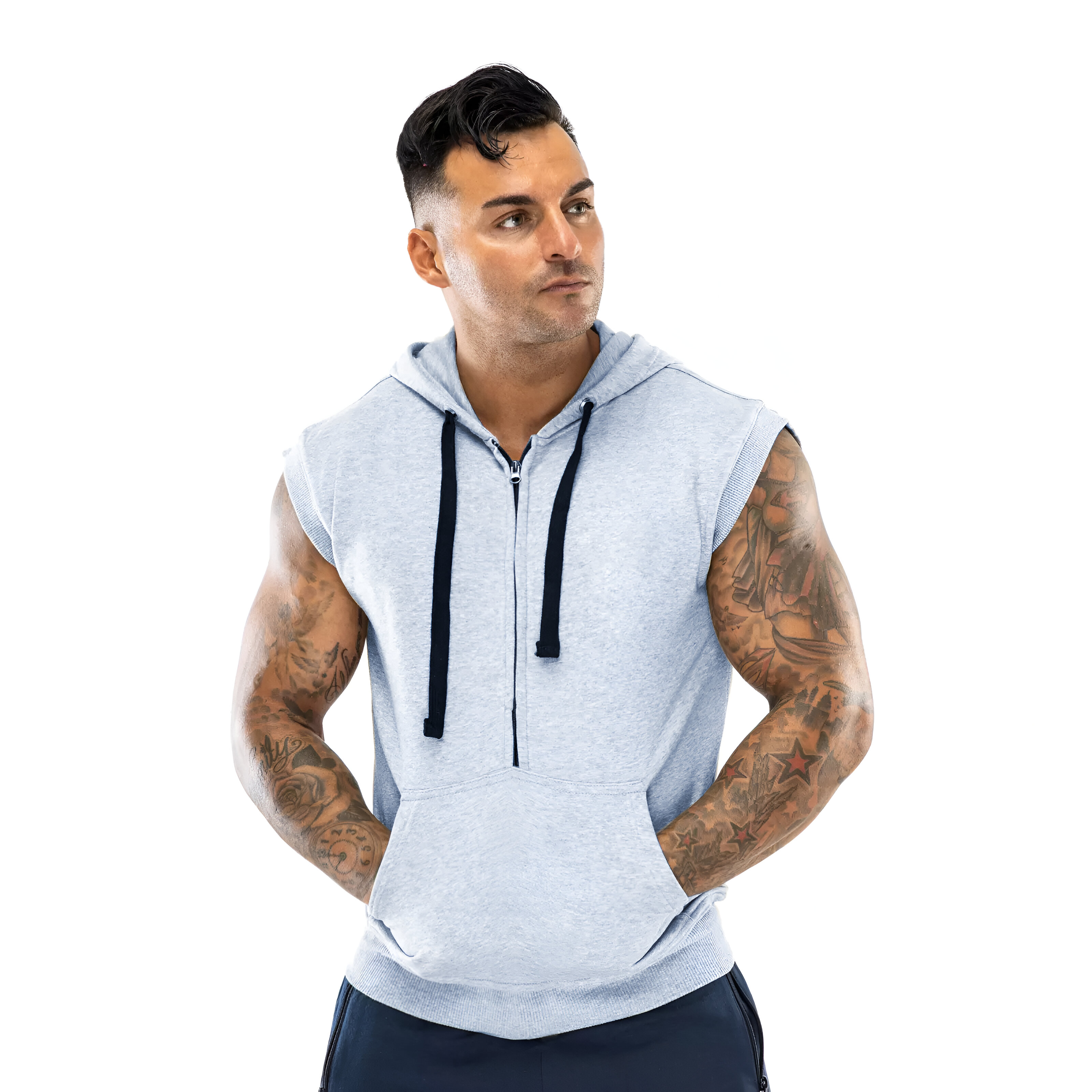 Men's Sleeveless Hooded Zipper Workout Tank Top, Solid Color, Casual Gym Fitness Vest